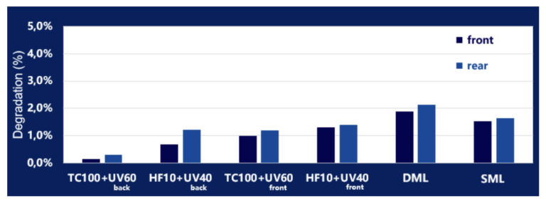Tulokset puhuvat puolestaan. DeepBlue 4.0 -paneelin teho heikkeni testien jälkeen vain 0,1–2,1 %, mikä on selvästi alle IEC-standardin 5 % rajan – vaikka testit olivat standardia ankarampia.